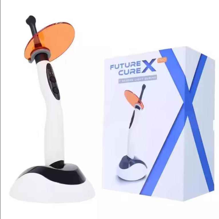 La luz de curado dental es un tipo de equipo dental que puede estimular los materiales dentales curables con luz para completar el endurecimiento al emitir longitudes de onda específicas (generalmente luz azul, 400-480 nm) de energía óptica. El propósito principal de la luz de curado dental es iniciar la reacción química de la "polimerización" del material dental curable con luz, que lo cambia de un material suave y flexible a un material de restauración dental duro y duradero que puede reemplazar o reparar los dientes dañados.